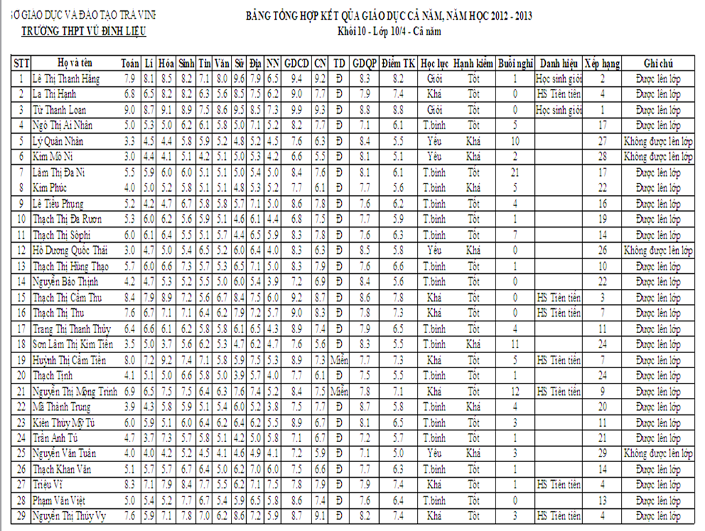 TRANG TIN ĐIỆN TỬ TRƯỜNG THPT VŨ ĐÌNH LIỆU TỈNH TRÀ VINH