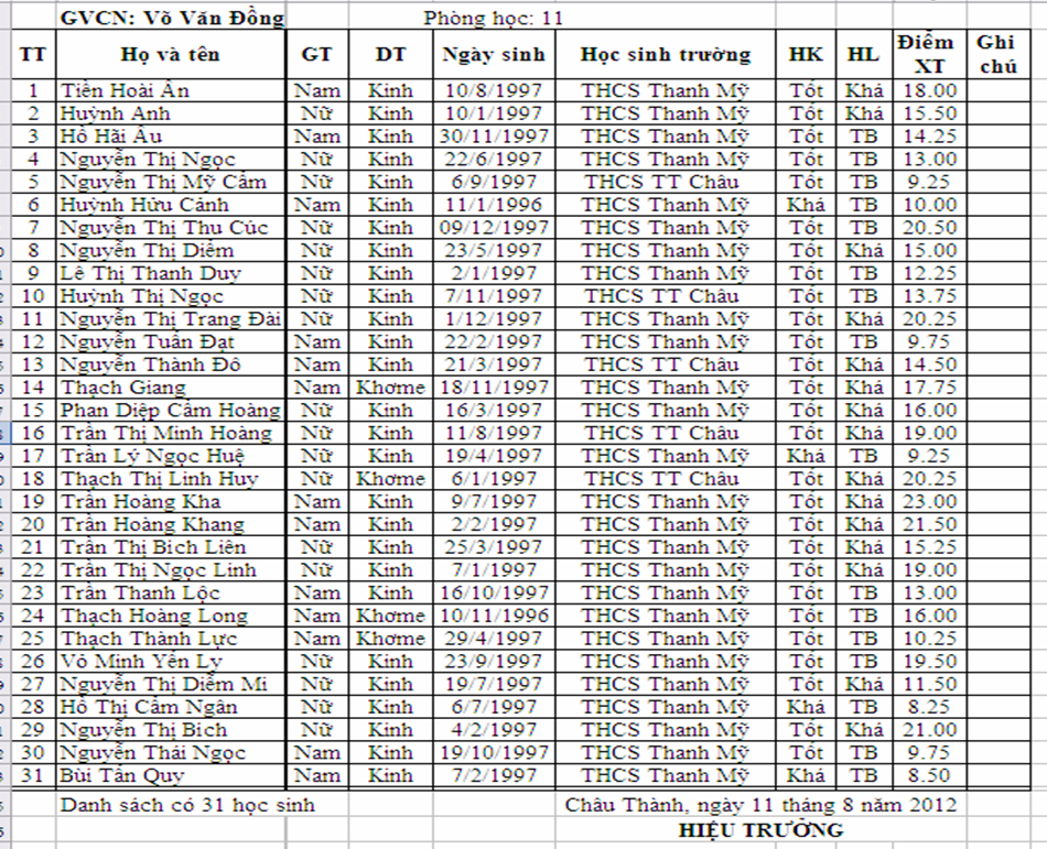 Danh sách học sinh lớp 10.5 năm học 2012 - 2013