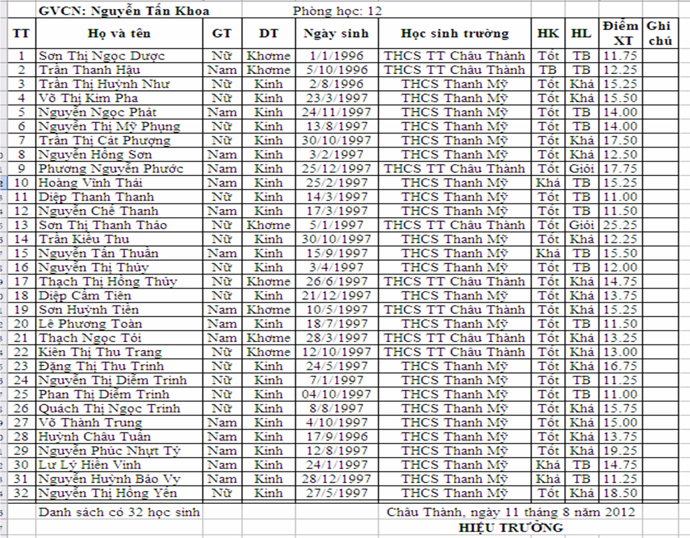 Danh sách học sinh lớp 10.6 năm học 2012 - 2013
