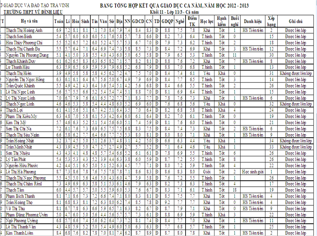 TRANG TIN ĐIỆN TỬ TRƯỜNG THPT VŨ ĐÌNH LIỆU TỈNH TRÀ VINH