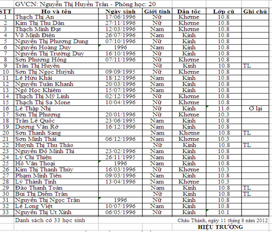 Danh sách học sinh lớp 11.7 năm học 2012 - 2013