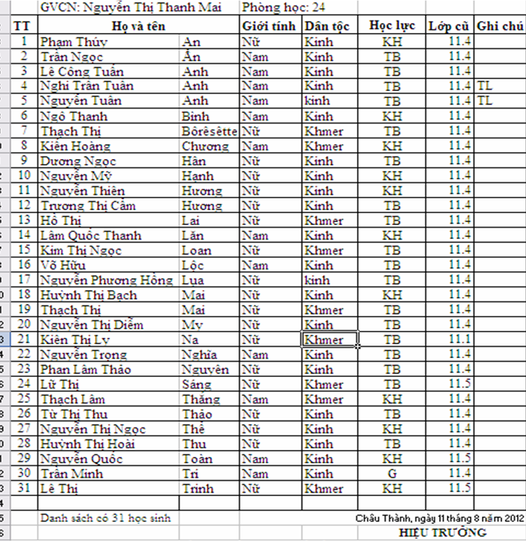 Danh sách học sinh lớp 12.4 năm học 2012 - 2013