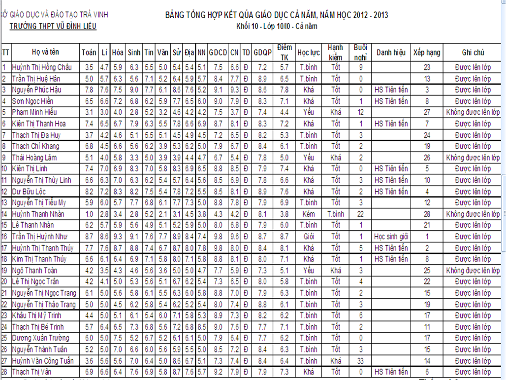TRANG TIN ĐIỆN TỬ TRƯỜNG THPT VŨ ĐÌNH LIỆU TỈNH TRÀ VINH