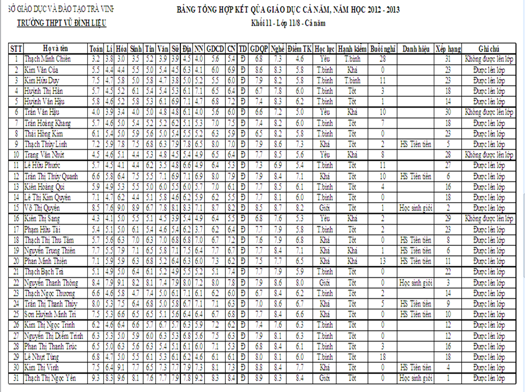 Kết quả học tập cả năm năm học 2012 - 2013 lớp 11.8