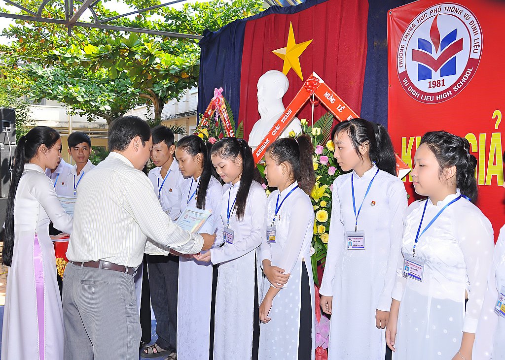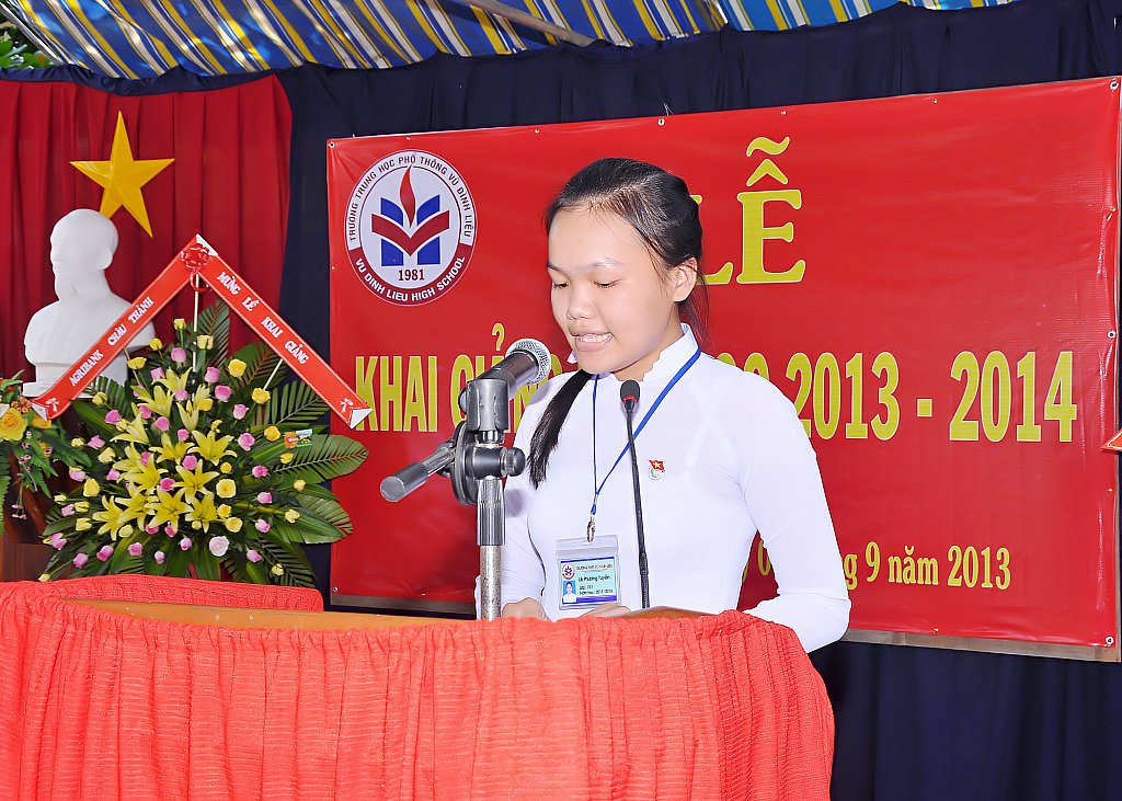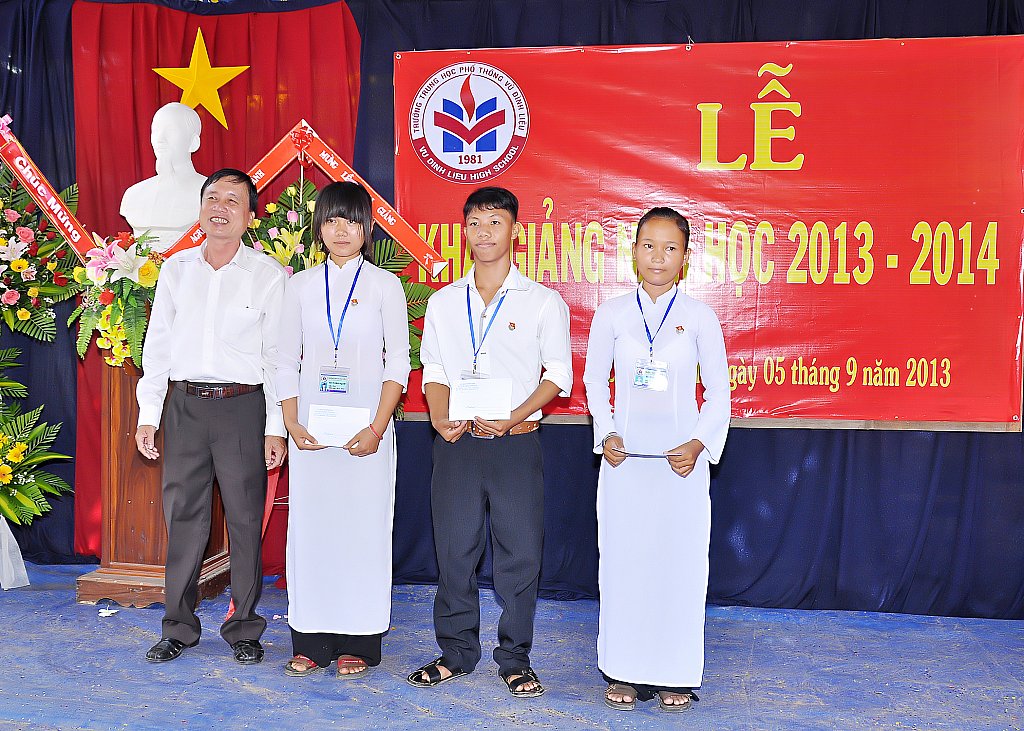 Ngày 5 tháng 9 hàng năm đã trở thành ngày hội lớn diễn ra trên khắp đất nước – ngày mà tất cả học sinh hân hoan đi dự lễ khai trường. Hòa cùng không khí tưng bừng, nhộn nhịp ấy, trường THPT Vũ Đình Liệu long trọng tổ chức lễ khai giảng năm học 2013 – 2014 để báo hiệu sự bắt đầu năm học mới với nhiều thành công mới mà tập thể trường sẽ cùng nhau phấn đấu thực hiện, đồng thời trao học bổng cho học sinh giỏi và học sinh có hoàn cảnh còn khó khăn của trường.