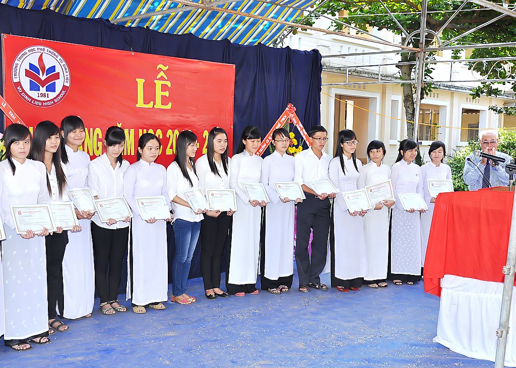 Trong buổi lễ, Hội đồng quản lý Quỹ học bổng Vũ Đình Liệu trao học bổng Vũ Đình Liệu và hỗ trợ học sinh học khá có hoàn cảnh khó khăn :