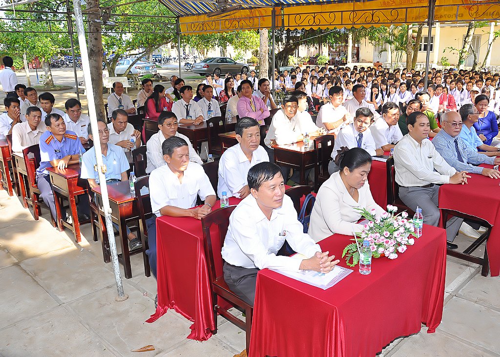 Đến với buổi lễ, thầy và trò trường THPT Vũ Đình Liệu vinh dự chào đón sự có mặt của: Bà Sơn Thị Ánh Hồng – UVTV Tỉnh Ủy – P. Chủ Tịch UBND Tỉnh Trà Vinh; Ông Mai Thanh Hùng – Phó Ban Dân Vận Tỉnh Ủy; Ông Huỳnh Văn Đồng - Trưởng Phòng Tổ Chức Sở GD-ĐT Trà Vinh; Ông Lê Văn Phục – Phó Bí Thư Thường trực Huyện Ủy huyện Châu Thành; Ông Phạm Trường Thọ - Giám Đốc hội đồng quản lý học bổng Vũ Đình Liệu; Ông Đình Thái Thiện – Giám Đốc Trung Tâm Ngoại Ngữ - Tin học Trà Vinh (Nguyên Hiệu trưởng nhà trường); Cô Vũ Kiều Nga, Cô Vũ Kiều Nữ - con gái ông Vũ Đình Liệu; cùng quý đại biểu nguyên là lãnh đạo Huyện ủy, UBND huyện, là đại diện của các ban ngành trong huyện, là đại diện Ban CMHS của trường và sự có mặt của toàn thể CB-GV-CNV và học sinh nhà trường.