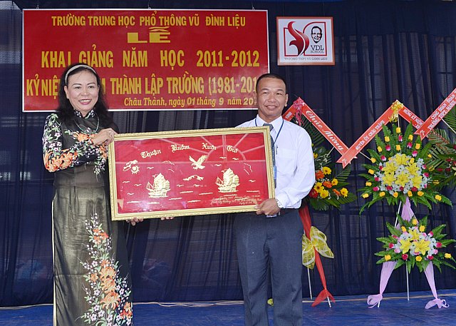 Thay mặt Đảng ủy và BGH trường THPT Vũ Đình Liệu, xin ghi nhớ những hoạt động hổ trợ rất nghĩa tình của tập thể CBGV- HS và CMHS trường THPT Marie Curie –TPHCM kết nghĩa và chúc cho tình cảm của tập thể hai trường luôn tốt đẹp và sự kết nghĩa luôn bền vững.