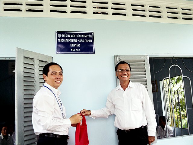 Đặc biệt trong tháng 5/2012 này, tập thể CBGV trường THPT Marie Curie -TPHCM đã trao tặng 01 ngôi nhà tình nghĩa trị giá 30 triệu đồng cho 01 giáo viên của trường THPT Vũ Đình Liệu có hoàn cảnh khó khăn về nhà ở. Đây là một món quà nghĩa tình quý giá giúp cho giáo viên có được căn nhà kiên cố an tâm sinh sống và giảng dạy.