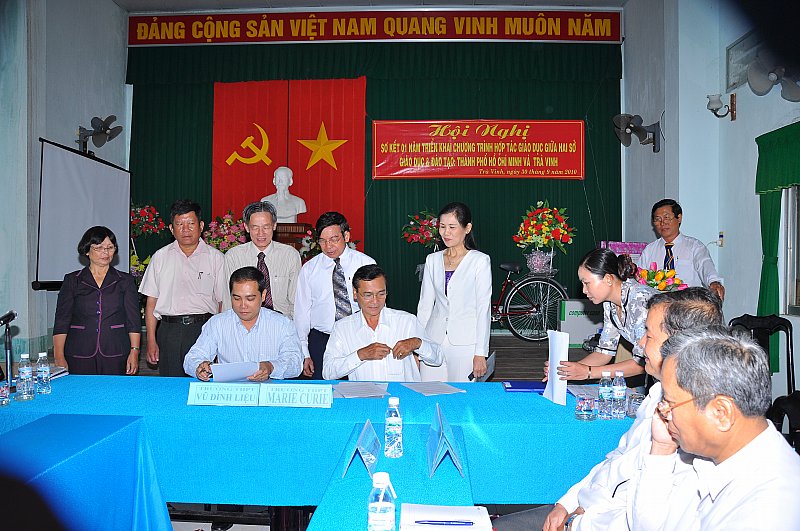 Thực hiện theo bản ký kết giao lưu giữa trường THPT Vũ Đình Liệu- Trà Vinh và THPT Marie Curie -TPHCM vào ngày 30/9/2010 được sự thống nhất của lãnh đạo GD&ĐT Trà Vinh và SGD&ĐT TPHCM, tập thể CBGV và HS hai trường đã có nhiều hoạt động thiết thực và có ý nghĩa trong công tác hoạt động giao lưu như: