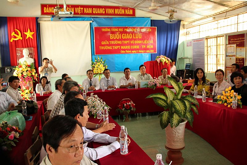 Đối với trường THPT Vũ Đình Liệu, trong 2 năm học qua nhà trường đã tạo điều kiện cho CBGVNV của trường đến tham quan học tập kinh nghiệm quản lý và giảng dạy tại trường THPT Marie Curie, tạo điều kiện cho học sinh hai trường tham gia các hoạt động hè tại huyện Châu Thành, tham quan các khu lịch sử, văn hóa, thắng cảnh tại Trà Vinh, tham gia các hoạt động văn nghệ- thể thao và trao đổi học tập giữa học sinh hai trường góp phần cho các em sống hòa đồng, đoàn kết và tham gia sinh hoạt thực tế tại vùng nông thôn.