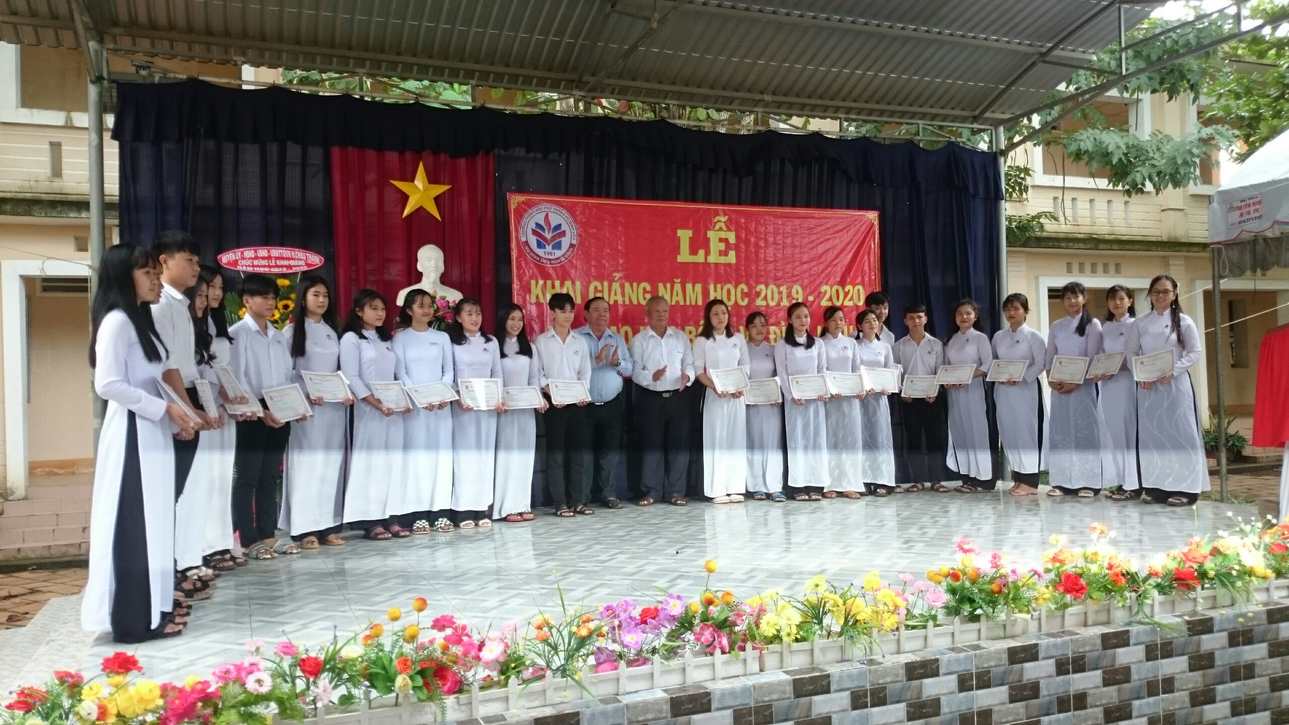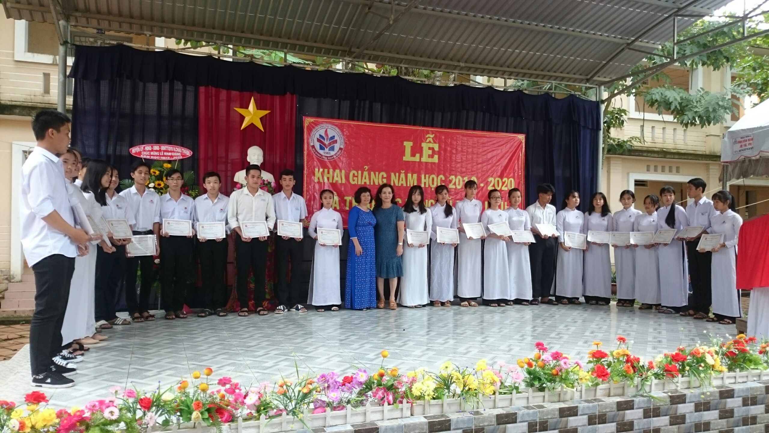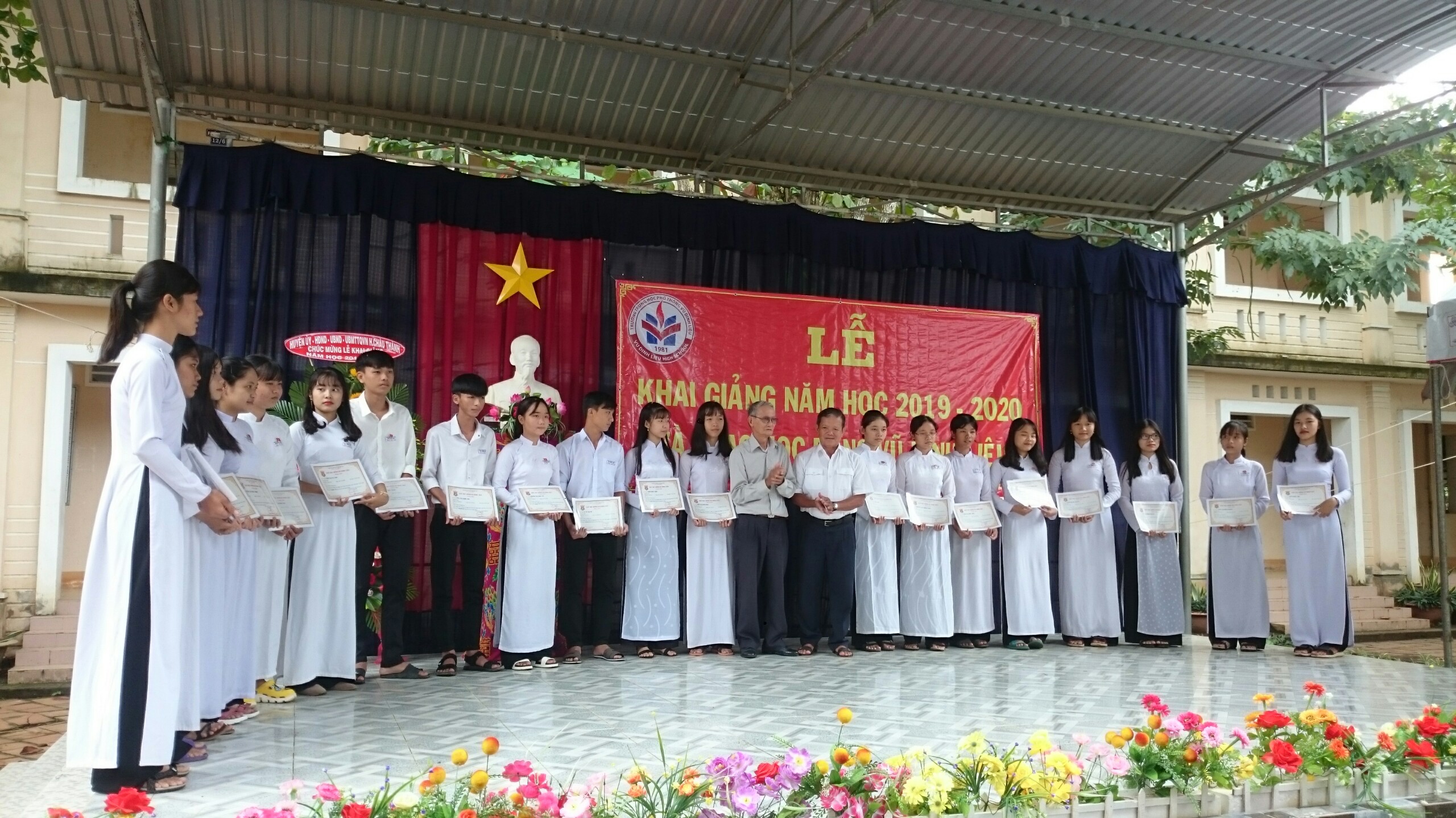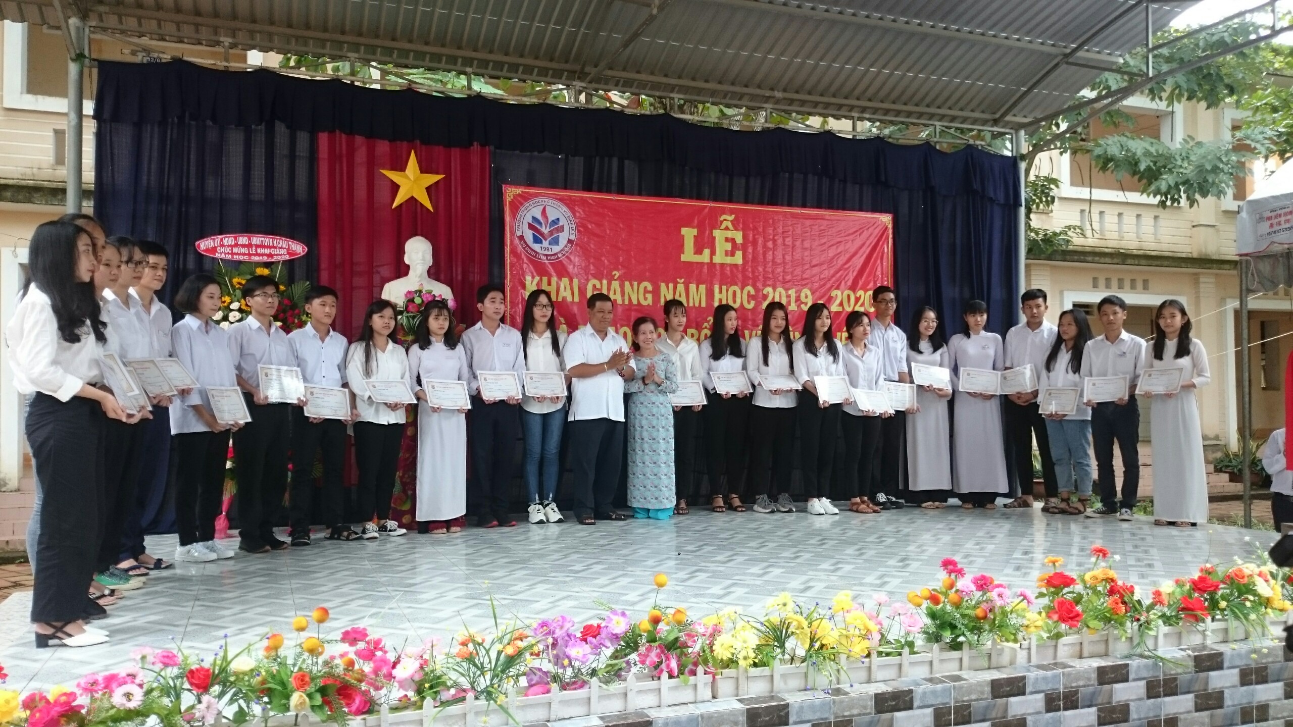 Trong dịp này, Nhà trường và Quỹ học bổng Vũ Đình Liệu trao 120 suất học bổng cho 120 học sinh có thành tích xuất sắc trong năm học 2018 - 2019 mỗi suất 3.200.000đ và nhiều suất học bổng cho học sinh có hoàn cảnh khó khăn có thành tích tích trong học tập