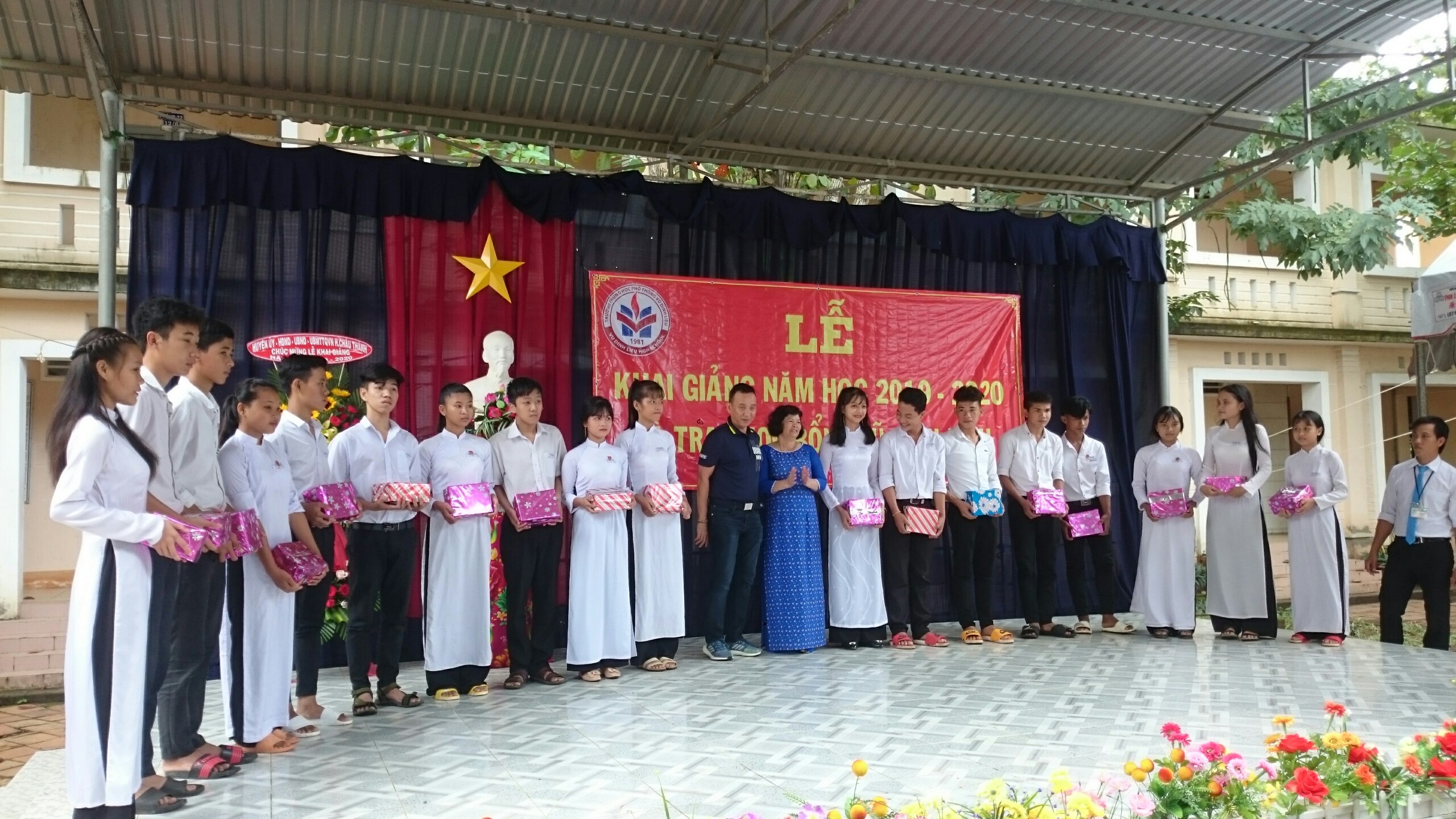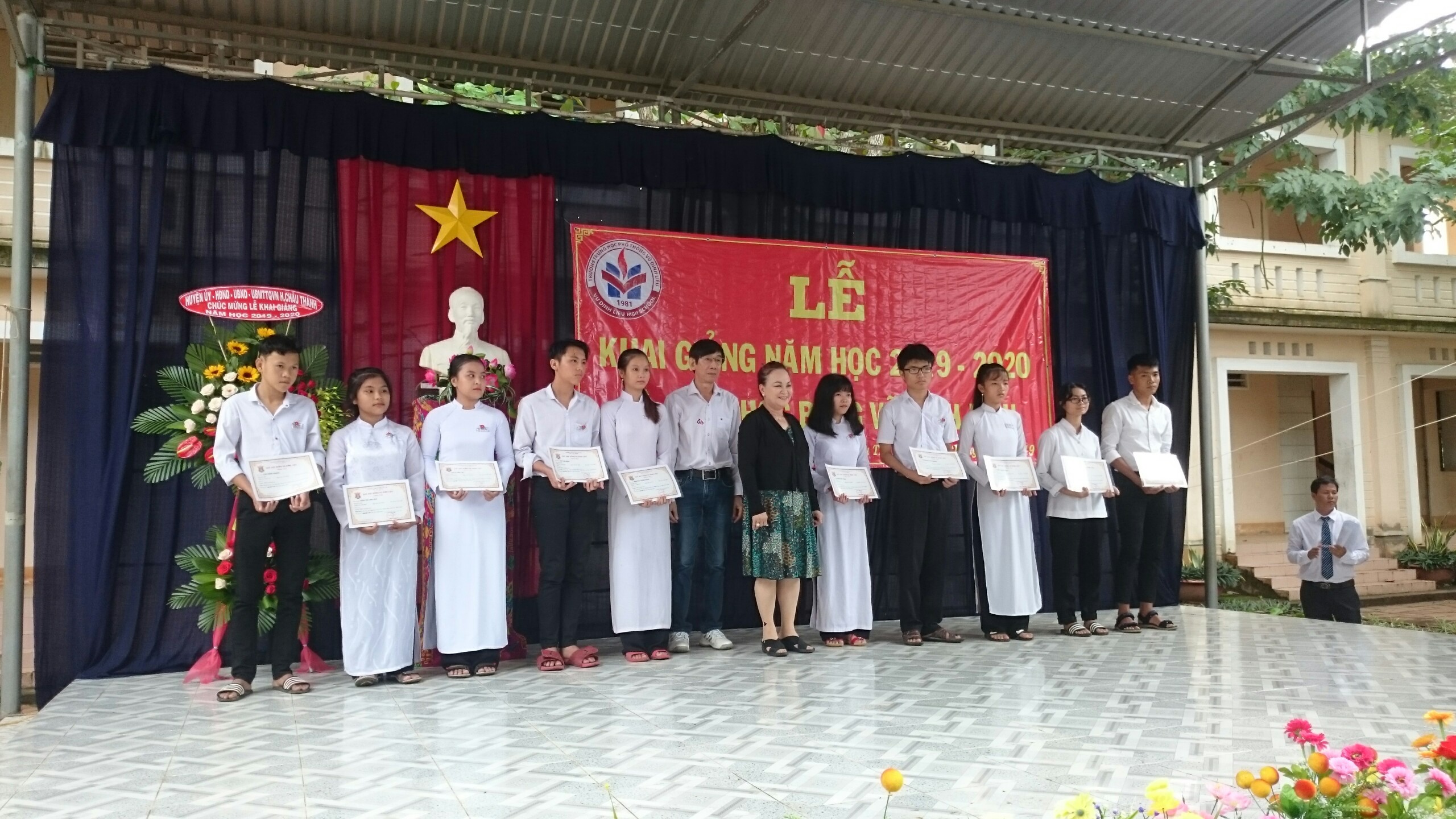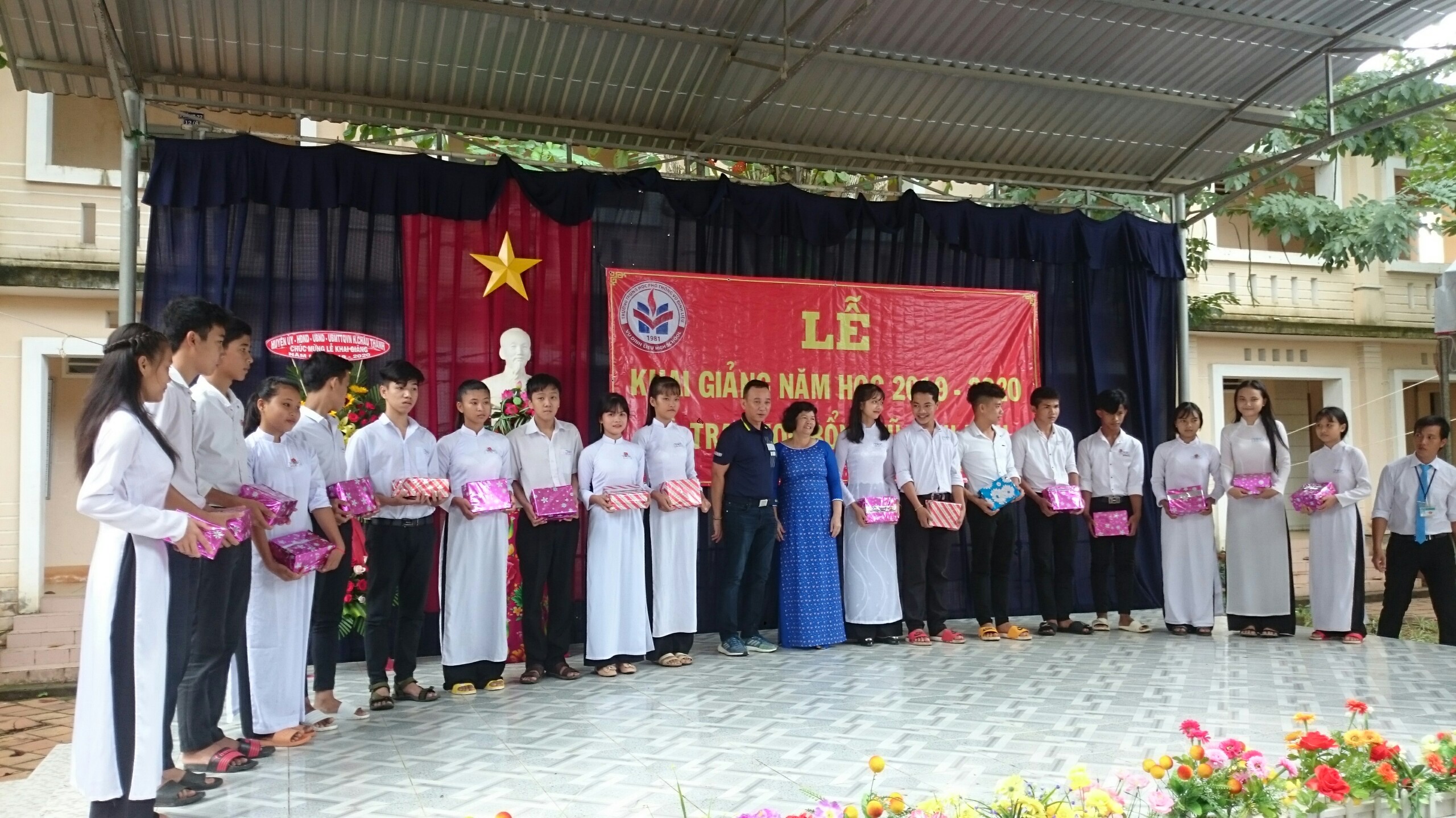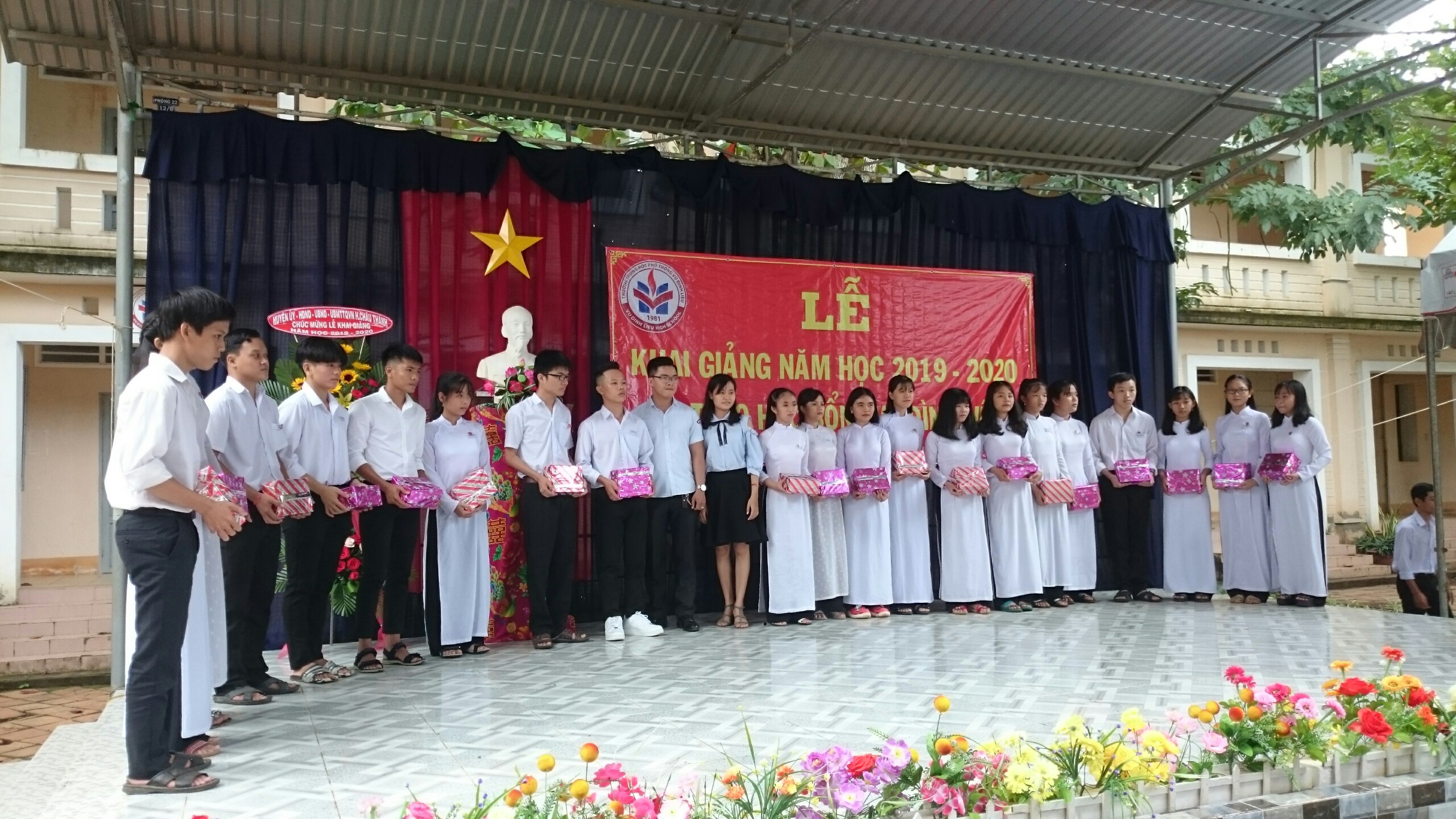 Trong dịp này, Nhà trường và Quỹ học bổng Vũ Đình Liệu trao 120 suất học bổng cho 120 học sinh có thành tích xuất sắc trong năm học 2018 - 2019 mỗi suất 3.200.000đ và nhiều suất học bổng cho học sinh có hoàn cảnh khó khăn có thành tích tích trong học tập