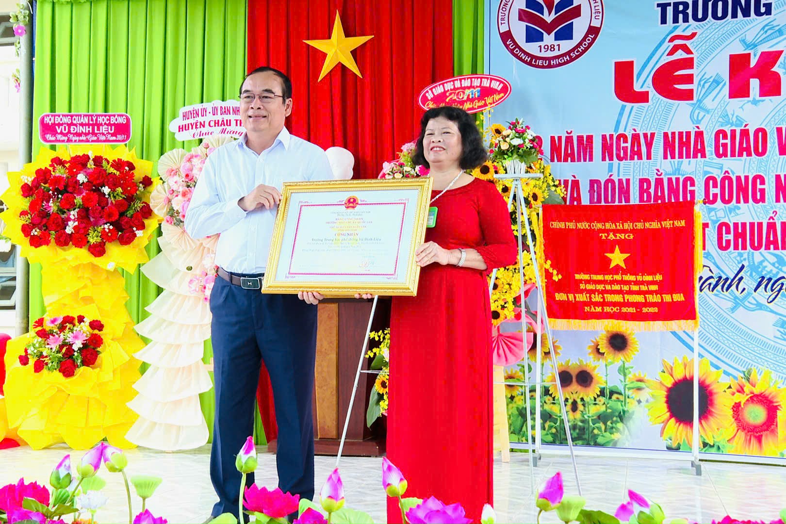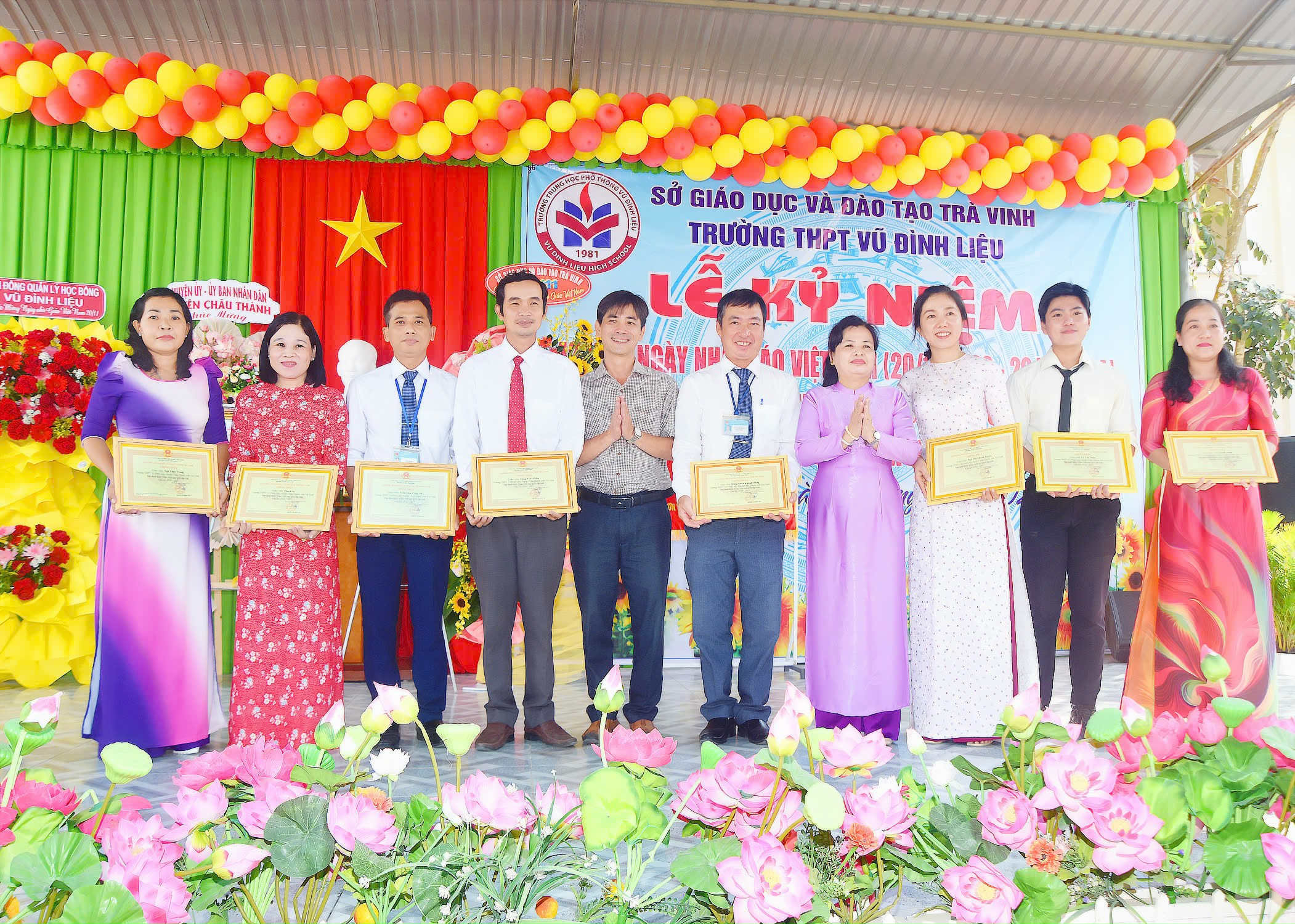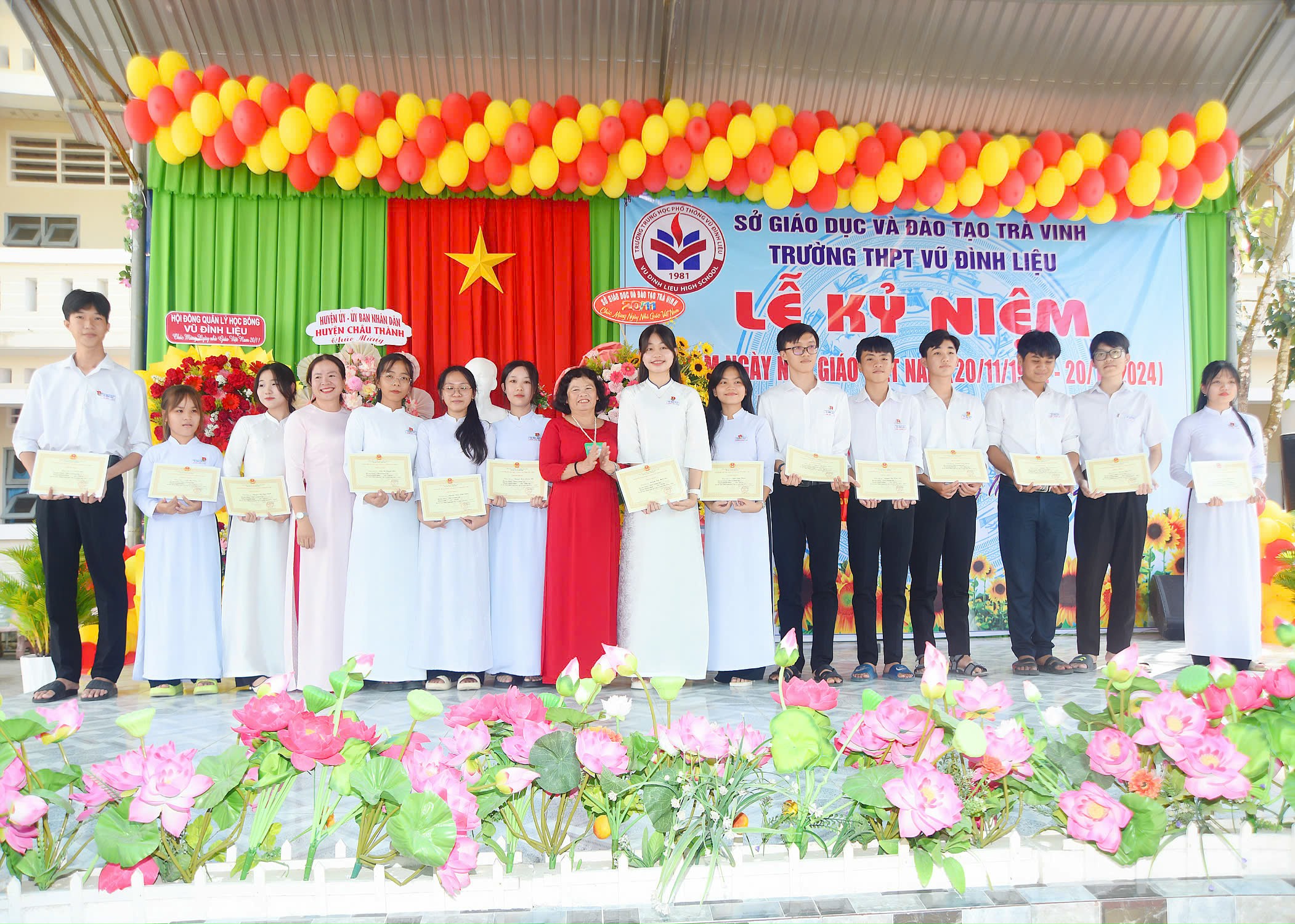 Đặc biệt Lễ nhà giáo năm nay có sự khác biệt hơn,đánh dấu sự phát triển đột phá Đảng bộ và tập thể nhà trường với niềm vinh dự và tự hào đón nhận Bằng kiểm định chất lượng giáo dục mức độ 3 và Bằng công nhận trường đạt chuẩn quốc gia mức độ 2, cùng với những hoạt động thi đua sôi nổi của thầy và trò trường THPT Vũ Đình Liệu lập thành tích chào mừng Đạĩ hội Đảng các cấp trong tỉnh nhiệm kỳ 2025-2030 và tiến tới chào mừng Đại hội Đảng toàn quốc lần thứ XIV nhiệm kỳ 2026-2031.