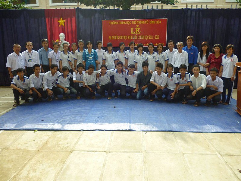 Hôm nay ngày 18 tháng 6 năm 2012, trường THPT Vũ Đình Liệu tổ chức lễ tiễn các em học sinh lớp 12 niên khóa 2009-2012 đã hoàn thành việc học tập ở bậc THPT, các em đã trưởng thành và được ra trường. Thay mặt BGH và tập thể thầy cô của trường tôi xin nhiệt liệt chúc mừng tất cả các em và công nhận từ giờ phút này các em là những học sinh đã trưởng thành.